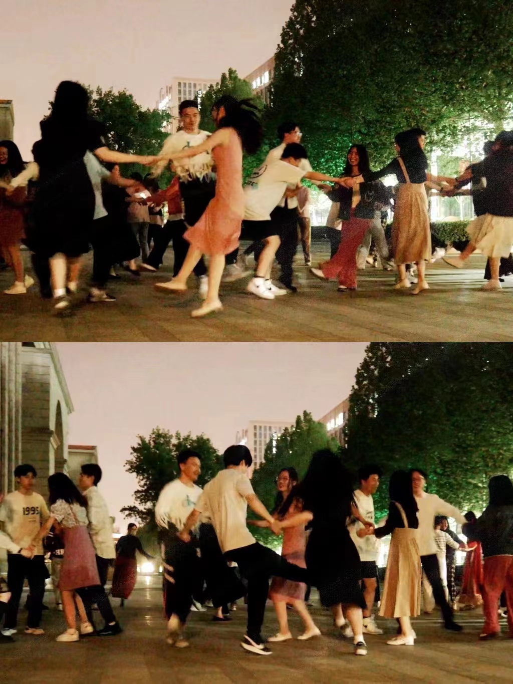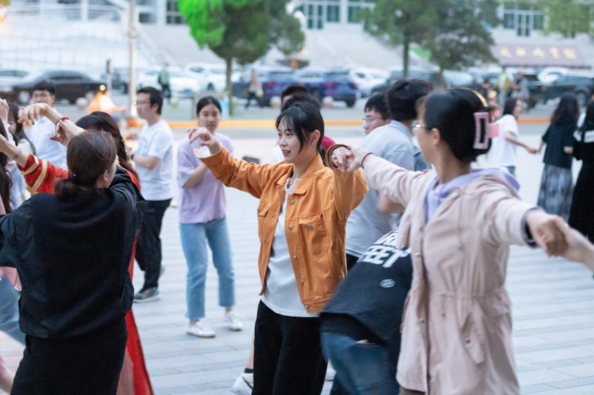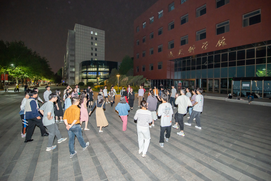 舞以达欢,以舞寄情。4月19日晚,学院路校区逸夫科学馆前音乐再次响起,“青春舞步”露天舞会第二次美育博雅课程现场,50余位同学跳动轻松愉快的步伐,跟随节奏的律动,释放学业压力,增进彼此了解,感悟舞蹈之美。夜幕拉起,同学们的欢跳热情并未降温。此次活动还吸引了中国石油大学研究生会的同学们前来学习。