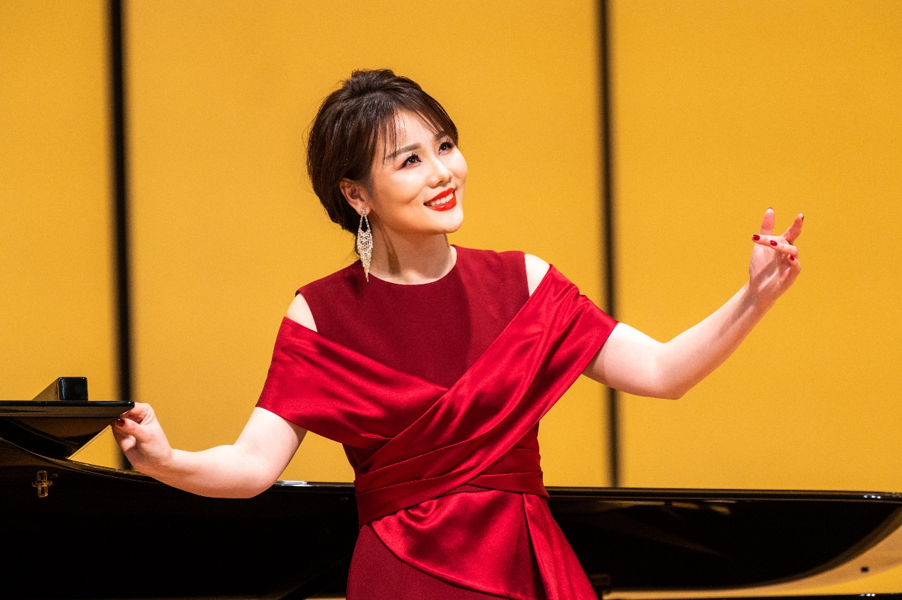 音乐会以歌剧《伤逝》中《欣喜的等待》开场,紧接着各个曲目轮番登场,异彩纷呈,既有中国地方民歌《赶牲灵》《娇莲爱我我爱她》,又有外国声乐作品《嗨呀,咿呀》《维利亚之歌》等。周晰丽老师深情的演唱博得了在场观众的阵阵掌声。