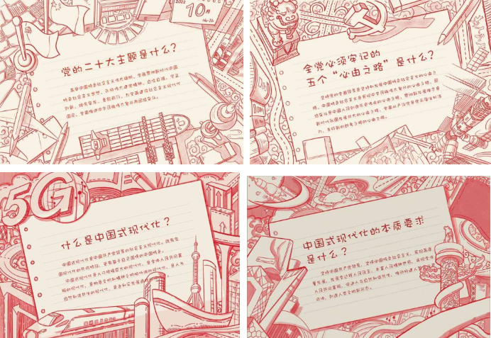 2022年是党和国家历史上极为重要的一年。政府工作报告指出,党的二十大胜利召开,描绘了全面建设社会主义现代化国家的宏伟蓝图。beats365亚洲体育投注研究生2022级党支部积极响应上级号召,以实际行动学习党的二十大的重要讲话精神。通过理论结合实践的方式,让学生党员及入党积极分子学习党的二十大精神,领悟其中的内涵,并利用专业优势,将理论知识通过画笔的形式转为实践产出。