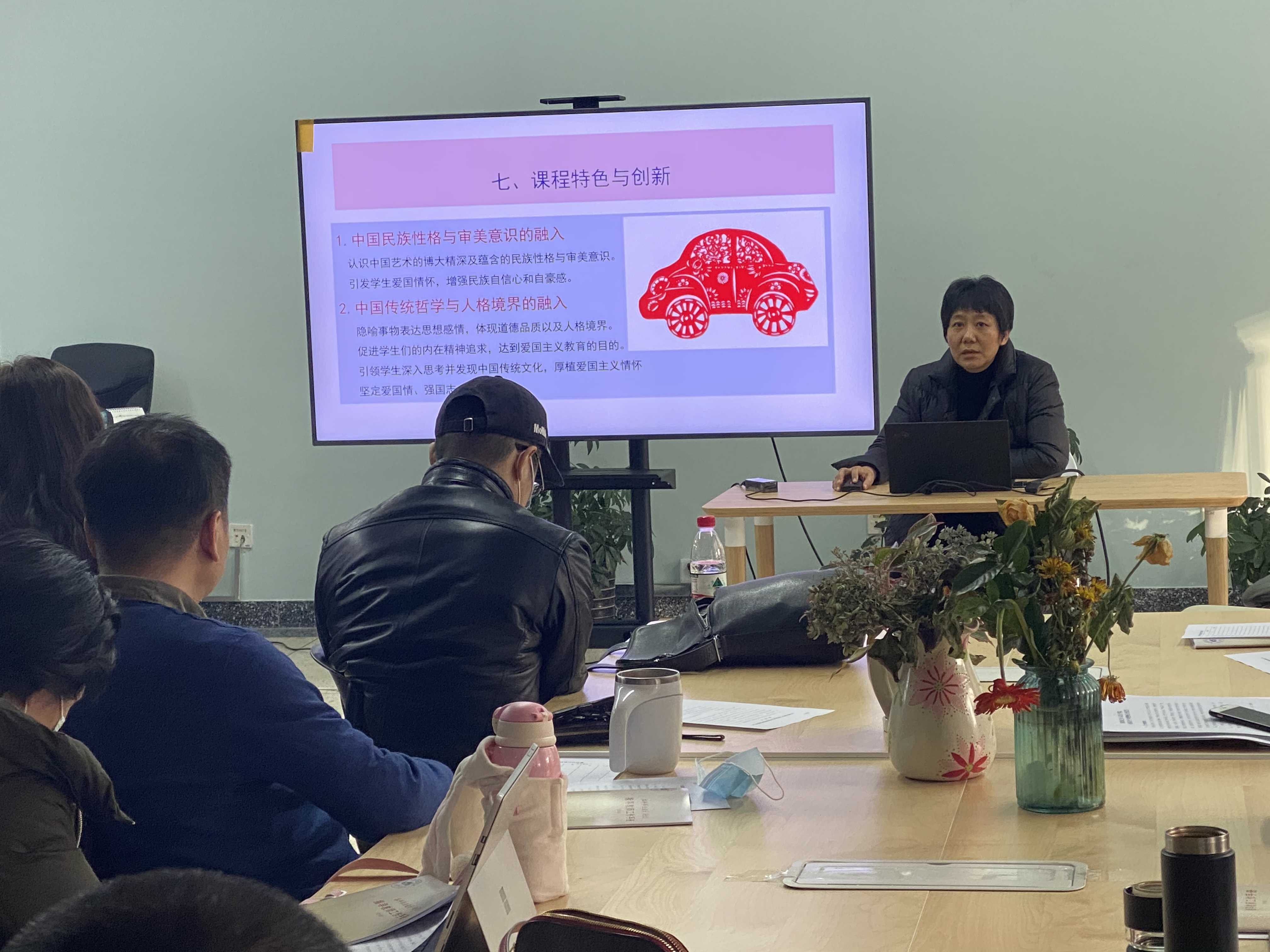 全院教职工聆听交流了关于《民间美术与创意》课程思政经验,该门课程内容具有鲜明的思政特点,团队教师通过多种有效的教学方法,带领同学们理解中国文化艺术精神,强调中国民间艺术在当代活态化地继承和发展,增强了学生们的文化自信。课程教学效果显著,学生课程作品多次参加国内外重要专业赛事获得奖项。同时,课程起到了很好的示范带动作用,同学们能够在本课程之后的艺术创作中积极的运用中国民间艺术元素,持续提高了审美和人文素养,增强了对民族文化的自信。另外,学院开设的《中国美术史》《艺术史与现代艺术》《中国水墨画技法》等多门课程中同样融入思政内容,学院将持续深入推进思政课程和课程思政建设,保持专业课程100%融入思政。