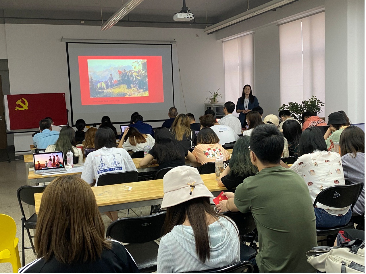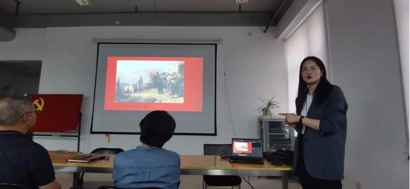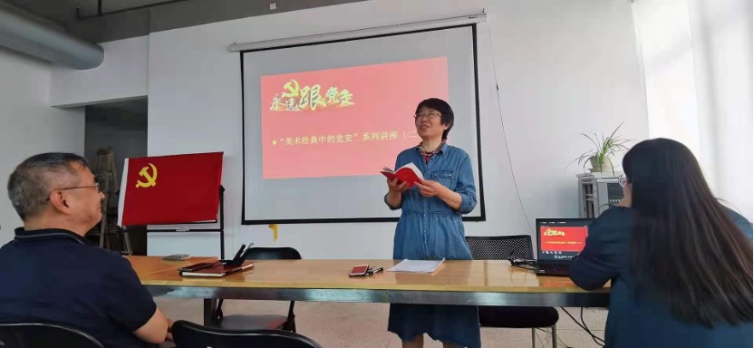 之后由教职工党支书宫万琳老师为师生们讲解“美术经典中的党史”党课,结合经典油画作品《井冈山会师》深入讲解美术作品中蕴含的党史、民族精神与时代精神。