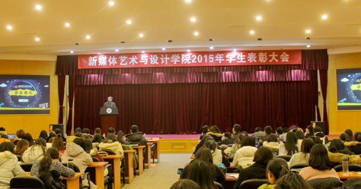 2015年12月30日下午四点半,beats365亚洲体育投注2015学生表彰大会在如心会议中心拉开序幕。beats365亚洲体育投注院长龙全教授、党总支书记沈旭昆教授、副院长谢正强副教授和叶强副教授、教学督导组组长张雪教授、视觉传达设计系主任王可副教授以及学院各年级班主任和辅导员出席表彰会。