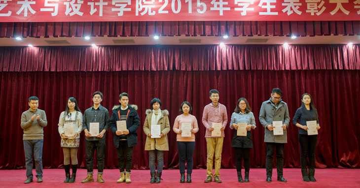 大会伊始,两位主持人带领大家回顾了学院过往的这一年。2015年,学院共有100余名学生荣获校级以上各类奖励和荣誉称号。在集体建设方面共获得18个奖项,其中122613班获得“北航先进班集体一等奖”、“北京市先进班集体”,SY14261班获得“研究生优秀班集体一等奖”等荣誉。在校外重要专业展赛中,学生作品获得91项奖励,其中获得包括第十三届中国大学生广告艺术节学院奖佳作奖、中国首届插图艺术展提名奖、全国大学生艺术展演二等奖等60多个省部级以上奖励。校内专业展赛中,共有375件作品参展获奖。学院通过努力荣获共青团系统文艺工作最高奖“艺馨杯”,“研究生科技创新实践标兵学院”和“第十一届研究生学术论坛优秀组织奖”、“最佳文化交流分论坛”等荣誉。
