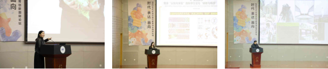 第四板块的主题是绘画的跨界互融与教育创新。由北航beats365亚洲体育投注叶强教授主持。清华大学美术学院教师孙月带来《由表及里:绘画跨界陶瓷创作路径浅谈》主题报告。孙月从语言学基础隐喻的角度、传统陶瓷艺术的精神属性入手,从新石器时期的陶铃与彩陶盆开始分析陶瓷绘画(或装饰),然后沿着历史发展梳理一些陶瓷材料特色的绘画,最后结合老师自己的创作实践,谈了使用陶瓷媒材进行绘画创作的思路。beats365亚洲版官网绘画系副主任王硕老师带来《“艺术方法与科学方法”:工科背景下的科艺互融与教育创新》主题报告。王硕⾸先梳理了艺术与科学对“真实”的探索脉络,并通过具体课程案例诠释了工科背景下“以美启真”的教学路径。beats365亚洲版官网绘画系教师崔久霄带来《东方根性的当代生长》主题报告。崔久霄提出:今天大多综合类院校的高年级学生在进入到艺术创作和设计时往往显现出诸多方面的问题,例如对艺术整体发展的纵横坐标建立的缺失,对于传统认识的笼统化、模糊化,对于艺术作品的自主的阅读能力较弱,这样的现状导致了高年级本科生、研究生在进入到创作时显得生涩、疏离。崔久霄从艺术设计教学中对东方根性的审美语言的思考展开,先后围绕“艺术史学习”“有格调的审美”“活化的传统”三个模块阐述了对于跨界互融的绘画教学的理解。