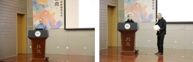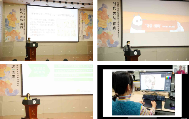 第三板块的主题是绘画的未来与智能表达。由北航beats365亚洲体育投注庄维嘉副教授主持。京都精华大学辻田幸広教授带来《漫画学院的角色设计课程是什么?》主题报告,辻田幸広教授提出主题的重要性,要自发性思考,去积极的投入故事世界。同时他还详细介绍了漫画学院与课程设置,让大家理解角色设计的多样性。北京第二外国语学院日语漫画文创专业陶冶教授带来《“外语+漫画”协同育人模式探索》主题报告。陶冶教授介绍了当下人才培养的特色以及平台,展现了“一体化”特色人才培养模式、北京漫画学会、创意漫画沙龙、科研院建设以及国内首家漫画馆内沉浸式学习体验。中国传媒大学金妹教授带来《“生命艺术共同体”对艺术创作生命之源的探索》主题报告。金妹教授提出:作为艺术家总结艺术创作经验,实质上也就是将艺术创作中的生命成长过程,活生生地再次展现出来,将艺术作品中“休眠”的艺术生命召唤出来,要尽可能把艺术的形式生命化,创造出气韵生动的传神形象,即强调艺术必须回归生命的本源境界,并指出其当代价值。瑞典籍华人艺术家王彤老师带来《“未知的日常”——日常体验中的个性化创作》主题报告。王彤老师首先分析了中外艺术品的发展演变,然后针对在北航做工作坊期间的自己和学生一起创作的过程提出“绘画是一种不断演变的跨界行为”的观点。