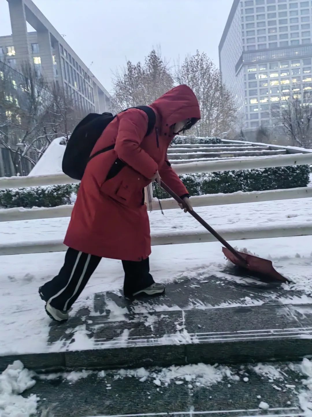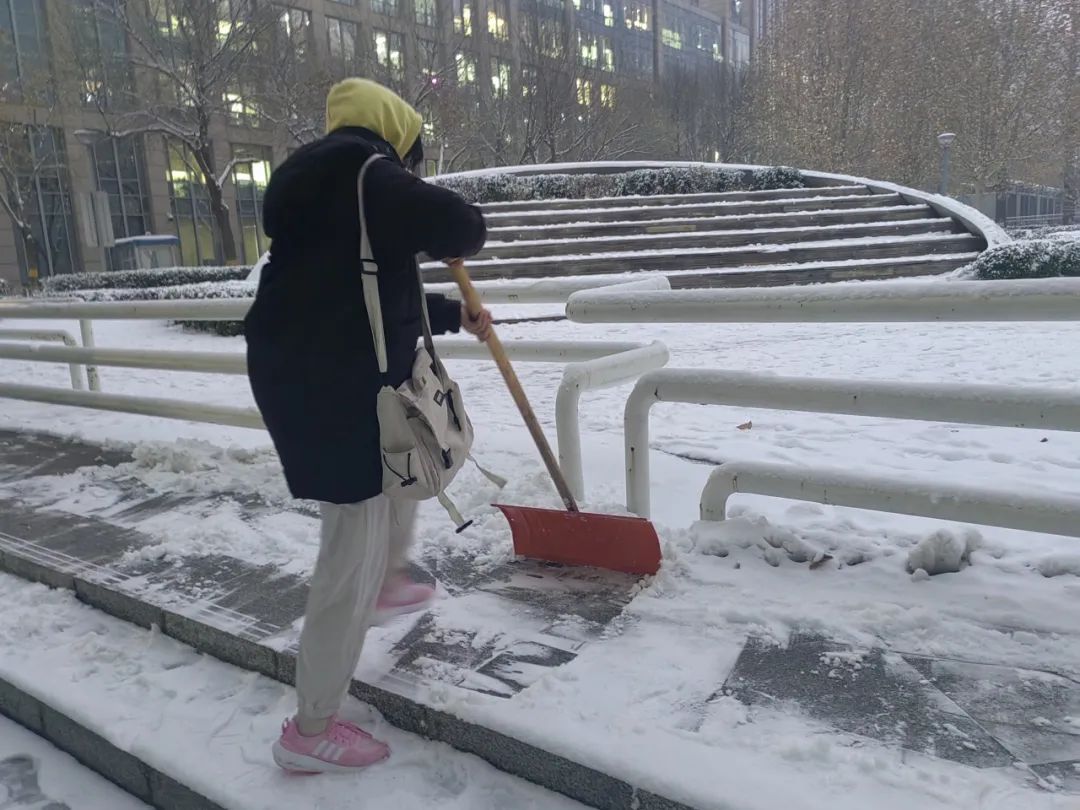 12月13日,北京迎来入冬以来的首几场雪,为了保障行人的出行安全,2023级同学们迅速行动起来,参与到铲雪活动中,用自己的双手为行人清扫出一条安全的通道。