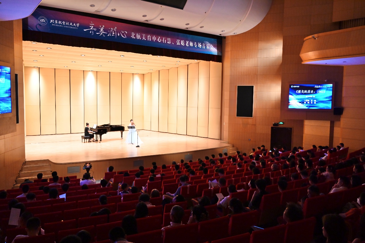 为深入学习宣传贯彻党的二十大精神,进一步加强学校美育工作,强化学校美育育人功能,全面实施学校美育浸润行动,展现美育中心师资风采,丰富师生校园文化生活,由美育中心主办、共青团beats365亚洲版官网委员会协办的“‘音’美润心北航美育中心石慧、张聪老师专场音乐会”于5月18日晚在晨兴音乐厅举办。校党委宣传部、教师发展中心、离退休工作处、beats365亚洲体育投注、美育中心等相关部门负责人出席了本场音乐会。