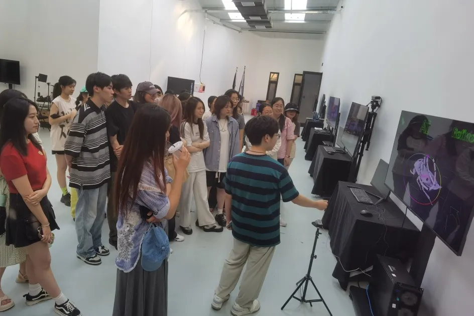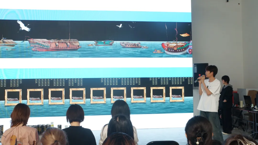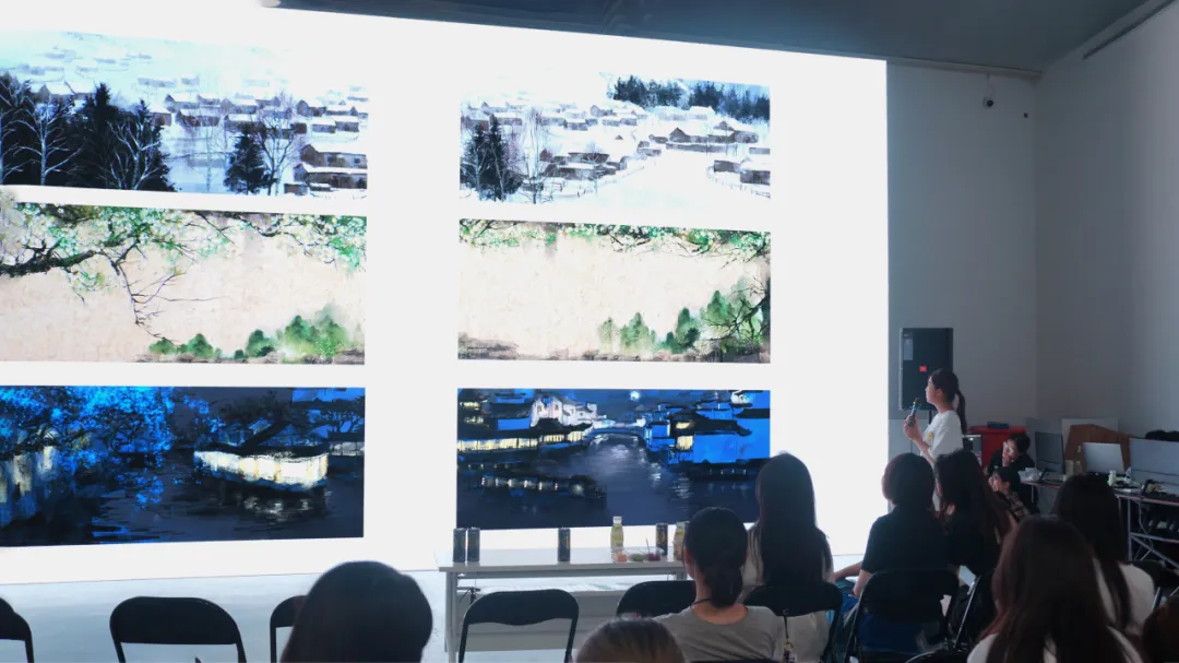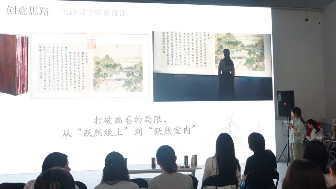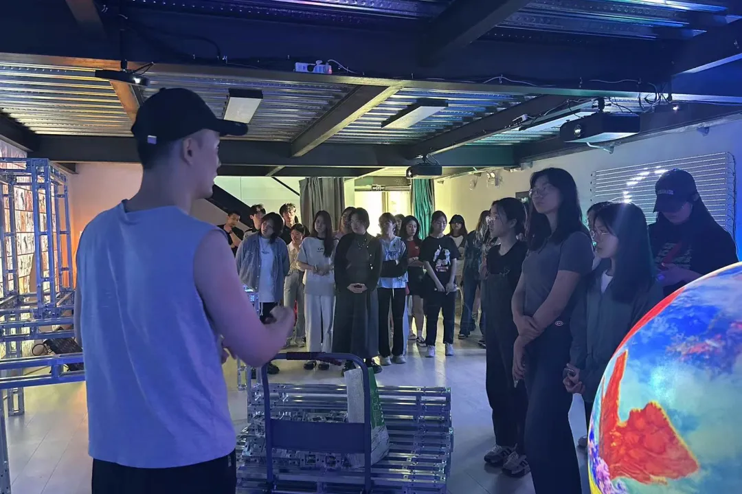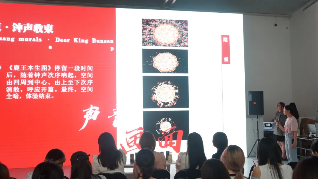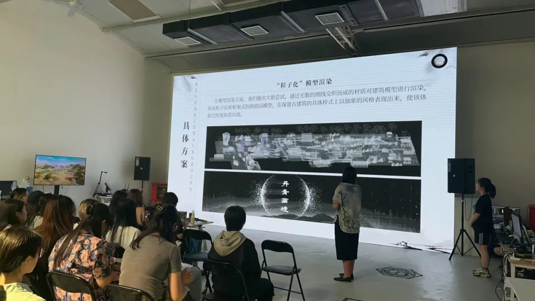 在深澜空间,同学们亲自体验了空间内的展品,对1号展厅进行了实地考察、勘测,为后续在软件内的全域创作做好了充分准备。在课程设计方案汇报答辩中,我们见到了各小组精彩作品背后的风格与主旨构思,更体现出了同学们对科艺融合的独到见解。