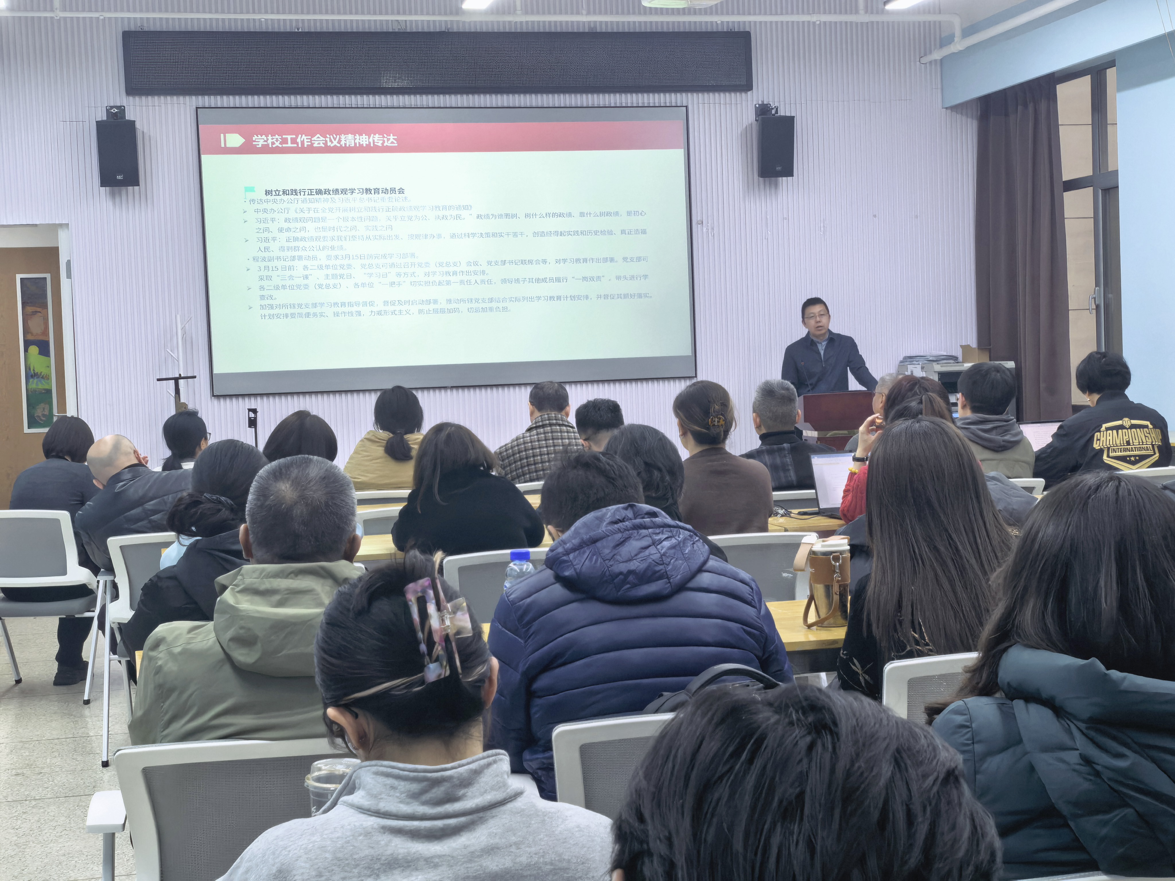 会上,苗建军书记传达了学校树立和践行正确政绩观学习教育动员会的核心精神,带领全体教职工深入学习习近平总书记关于政绩观的重要论述,强调政绩观问题是根本性问题,关乎立党为公、执政为民,全体教职工要深刻把握“政绩为谁而树、树什么样的政绩、靠什么树政绩”的时代之问与实践之问,坚持从实际出发、按规律办事,以实干创造经得起实践和历史检验的业绩。