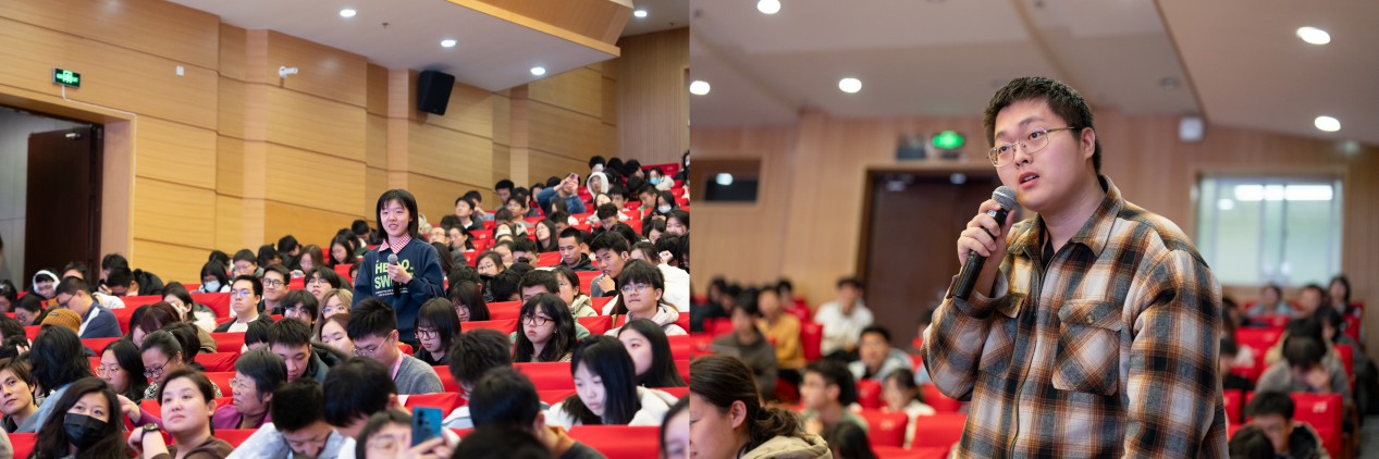 讲座结束后,同学们积极与徐迎庆进行互动交流。同学们就人工智能背景下如何更好地利用科技与艺术结合进行设计创新、学科背景与设计创新之间的关系等方面提出问题,徐迎庆进行了耐心解答。