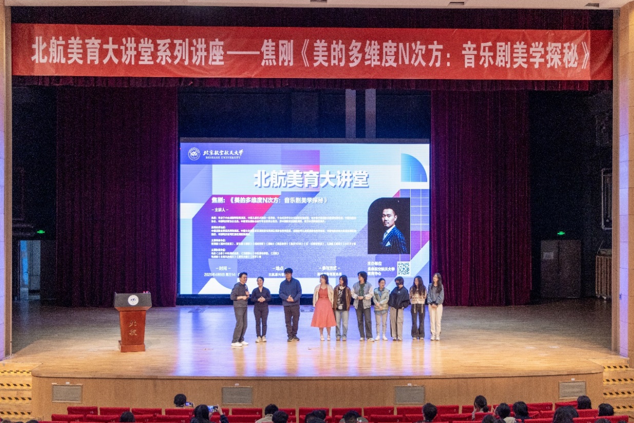 4月9日下午,北航美育中心特邀中国儿童艺术剧院一级导演、中央戏剧学院音乐剧系客座教授、东方演艺集团音乐剧团特聘导演焦刚做客美育大讲堂,为师生带来“美的多维度N次方:音乐剧美学探秘”美育主题讲座。讲座由北航美育中心副主任宋泽惠主持。焦刚首先通过《猫》的著名选段,带领同学们走进音乐剧这一融合了歌唱、舞蹈、表演、舞台美术等多种元素的综合艺术形式。他以创作过程中台前幕后的故事为切入点,深入浅出地讲解了音乐...[详细]