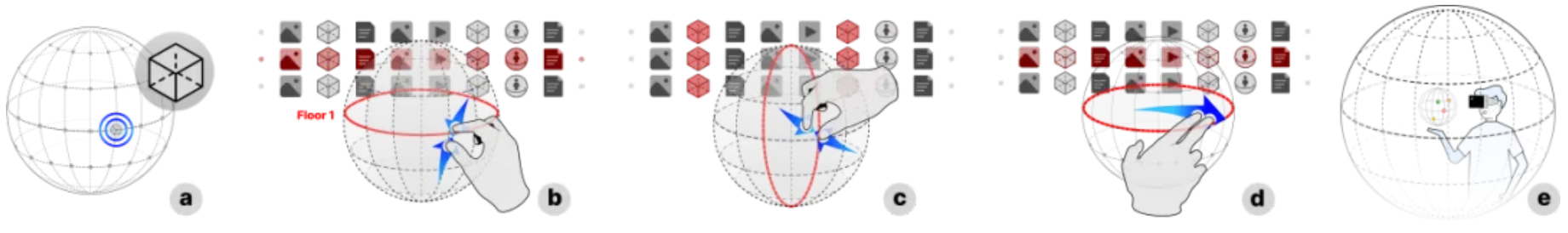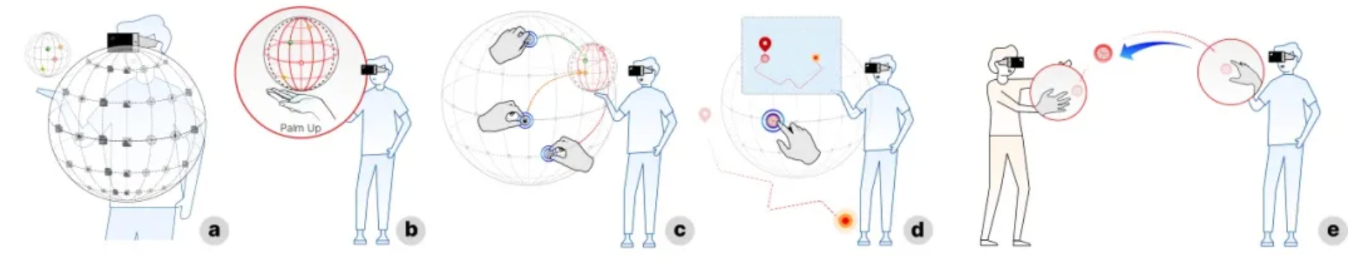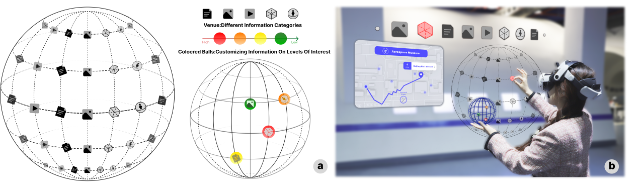 在本次Interactivity展示中,我校师生所展示的研究成果深入探讨了基于地球的信息显示优势与MR技术的融合应用。该成果突破了传统平面展示的限制,借助MR技术的虚拟现实优势,构建了专为博物馆和展览空间设计的3D多维信息显示和空间交互系统。该系统利用地球的经纬度描述作为信息组织的基础,结合球体特性设计了一系列创新的交互方法,旨在提升用户的空间感知和交互体验。这些交互方法包括激活、拾取、投掷、导航和跟随等,使得多个用户可以在同一设置中共享和协作,共同探索和学习。这一创新性的研究成果不仅为博物馆和展览空间的信息展示提供了全新的解决方案,同时也为人机交互领域的发展注入了新的活力。