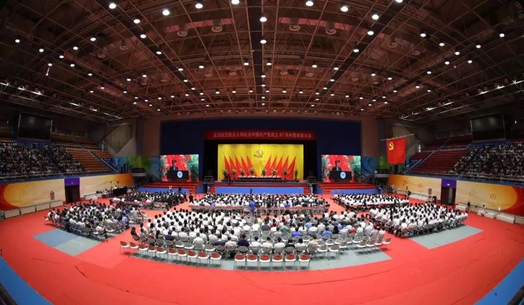 为纪念中国共产党成立97周年,深入学习贯彻习近平新时代中国特色社会主义思想和党的十九大精神,落实全国高校思想政治工作会议精神,充分展示学校基层党组织、共产党员和党务工作者的精神风貌,激励广大党员干部和师生员工在推动发展、服务师生、凝心聚力、促进和谐等各项工作中奋发进取、建功立业。2018年6月29日下午,学校纪念中国共产党成立97周年暨表彰大会在体育馆隆重召开。