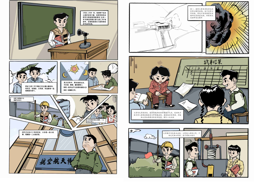 在故事脚本创作阶段,我们以“北京二号”的研制历程为蓝本,深入挖掘并创作了10个兼具教育意义与吸引力的漫画故事脚本。这些故事生动展现了北航人的智慧与汗水,是中国航空航天事业辉煌历程的缩影,它们以文字为载体,承载着北航人的梦想与追求,触动着每一个渴望了解、热爱航空航天的心灵。